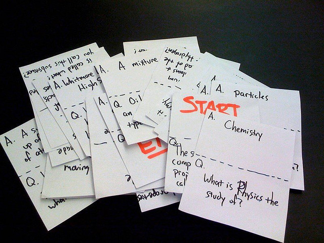 I asked if they did the card only once. They said “Oh no! We had to do the cards over several times to get them exactly right.” Then I asked how much they used the cards in the test. At this point, the students began to see what I wanted them to understand. They said they didn’t use the cards very much because they already knew what was on them. So I said, “In other words, you had to understand and learn what was going to be on the test in order to create the card. That’s when the learning was really happening. Doing the card is just one way to learn what you needed to know.”